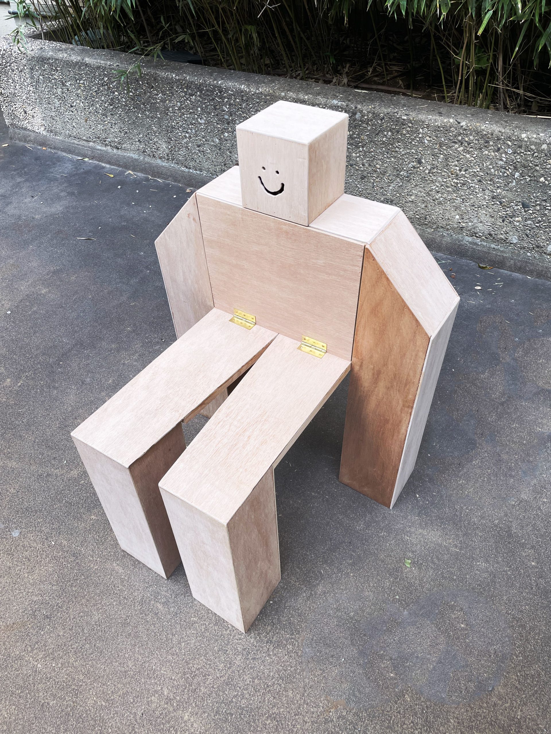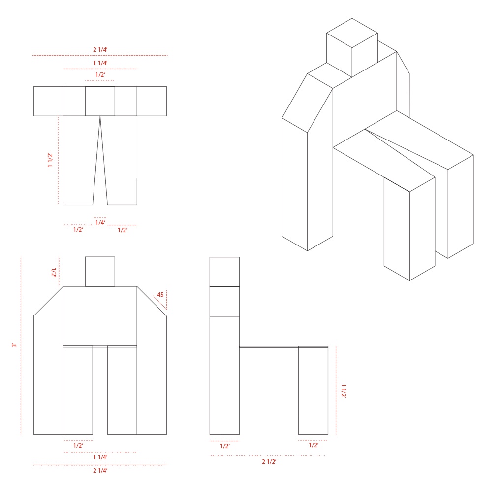 Donovan is a chair made out of recycled Luan with a plywood structure, fastened together with nails and wood glue. For the assignment, we had to use or create a schematic to make a structure, to which I created my own schematic pictured with the chair. He also features a cabinet with a magnet catch where his chest is.