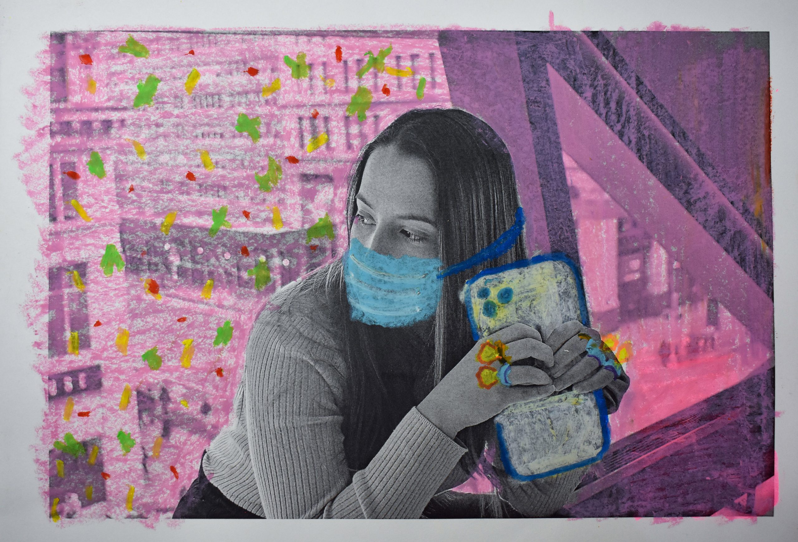 Conceptual and serial: Consisted of “A series of portraits of a concept of your choosing”. Given my own quarantine situation, I couldn’t take new photographs, therefore, I decided to recycle the ones I had printed before in order to intervene with crayons. The photographs show another perspective of how the current situation is changing and hitting all of us.