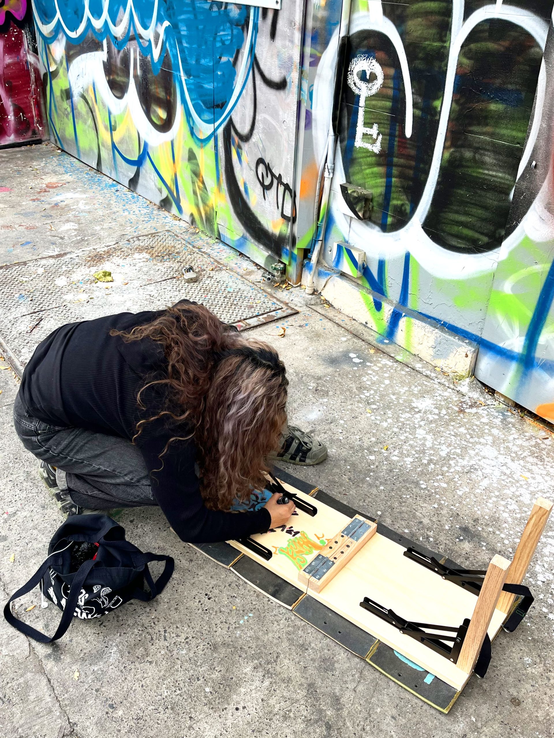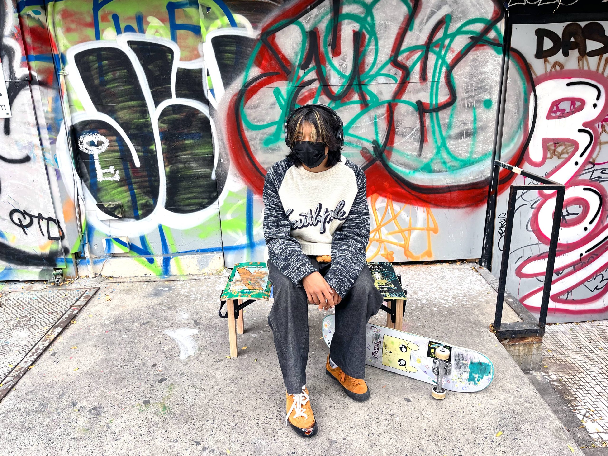 A lot of the time, it’s hard to feel comfortable at a park because it’s a white and male-dominated space. I want to create a portable “safe space” that we can have at any park. It will be somewhere for the user to feel like they belong. I’m doing this by making a bench that can turn into a bag, something that can travel anywhere for anyone. I would also like to make it out of skate decks from people across the whole NYC skating community, symbolizing the way we can come together and support each other.