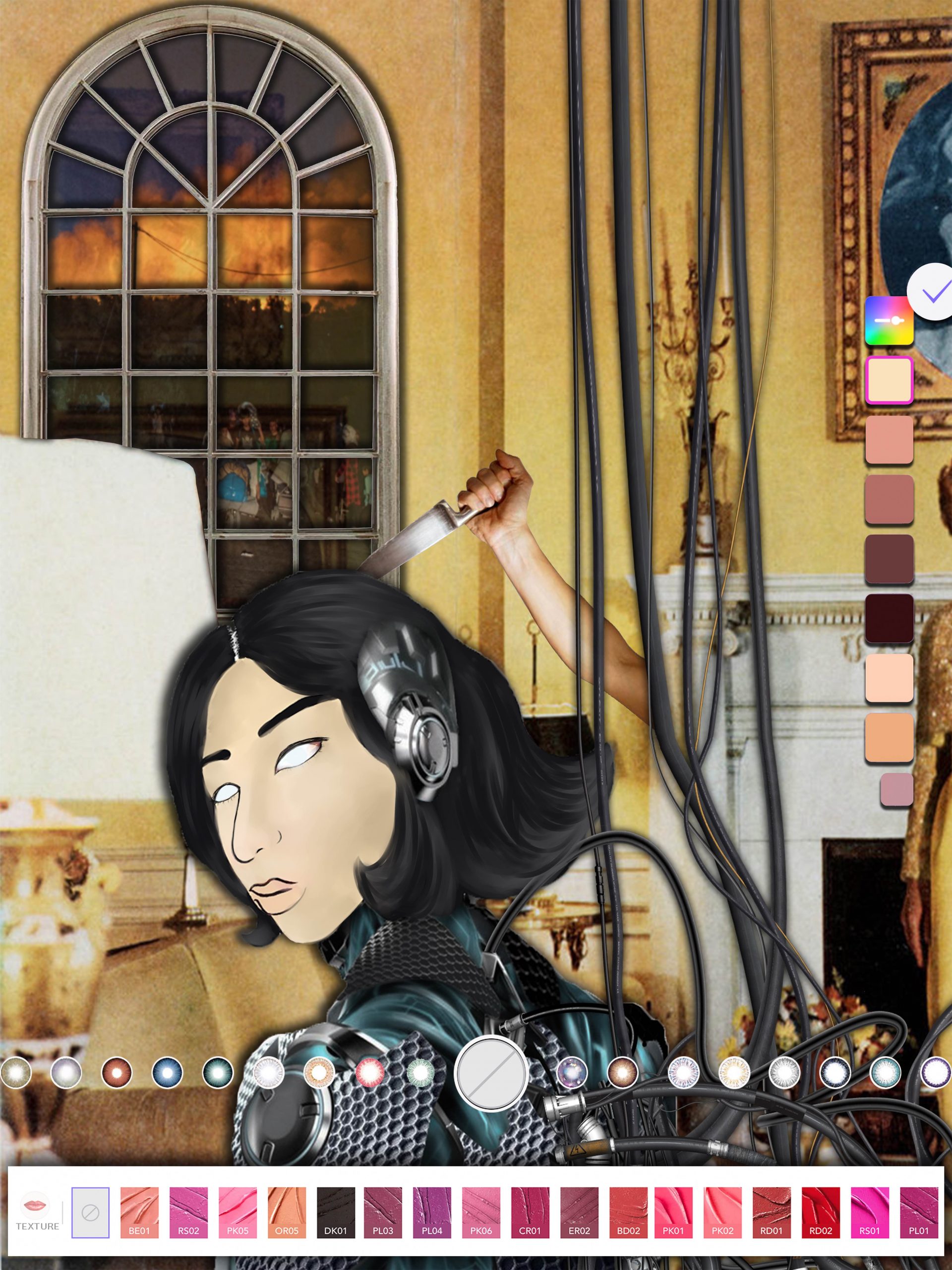 For this project, I turned myself into a robot. Every part of this robot is selected. Whether it is my eyes, lip color, or my thoughts. Behind me are various data cables. These cables represent the thoughts I have poured into my head. I like to think of myself as a robot. Because I like to absorb external things like a machine and compress them in my body. My thoughts are based on analyzing this information and summarizing it. My life creed is also strange. I like to use a sense of crisis as my driving force. I will always think of the worst result. This way, I can work hard to prevent this from ending from happening. So there is a knife behind my head. Only this knife can let me move forward with peace of mind. This is why I chose robots as a carrier. The robot has no other emotions. Its only weakness is energy exhaustion. So I am like a robot, with only crisis awareness. I used different materials to collage the body of the robot. Connected to my head. The picture’s various appearance choices mean that what I show is only the side I want to show to everyone. The gorgeous room in the background and the scene outside the window is inspired by my favorite collage artist Martha Rosler. Martha’s work likes to contrast beautiful scenes with the cruelty of war and present a harmonious but strange picture. I chose work by Martha and recreated it. I stay in a gorgeous home in the picture, but I can only feel at ease when I see people fleeing outside the window.