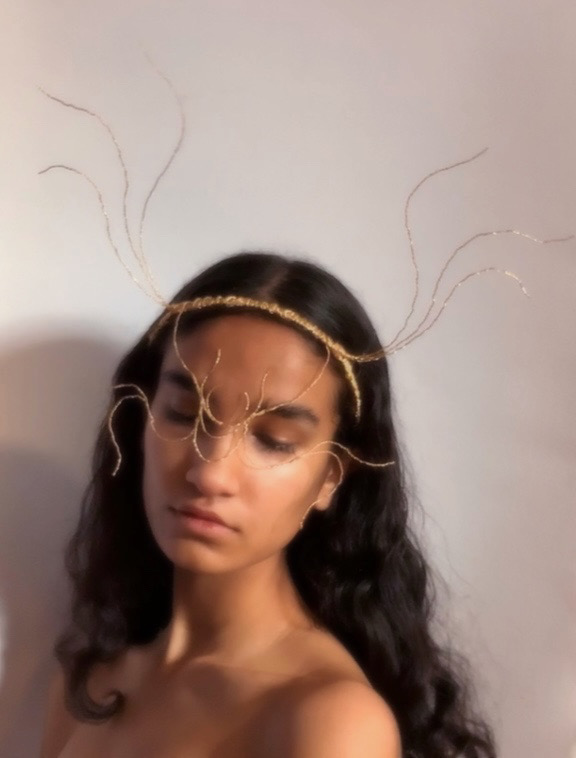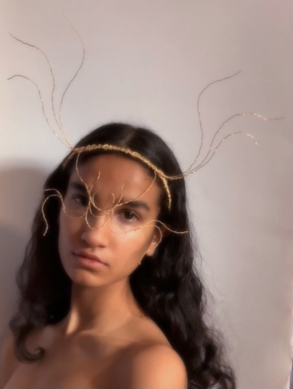 I am a very introverted person. I am shy and reserved and like to quietly and carefully observe my surroundings. I am very careful with who I trust and who I let close to me. Due to this, I have been told all my life that I remind people of a rabbit. For my piece, I created a rabbit anatomy-inspired modern adaptation of a battle headpiece – representing how my observant and cautious nature acts as a means to protect myself.