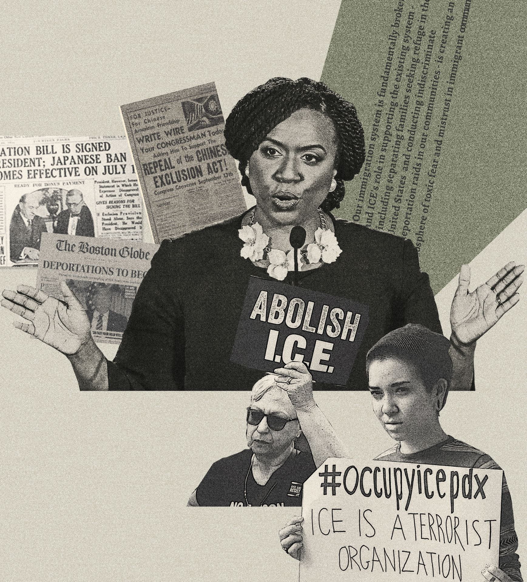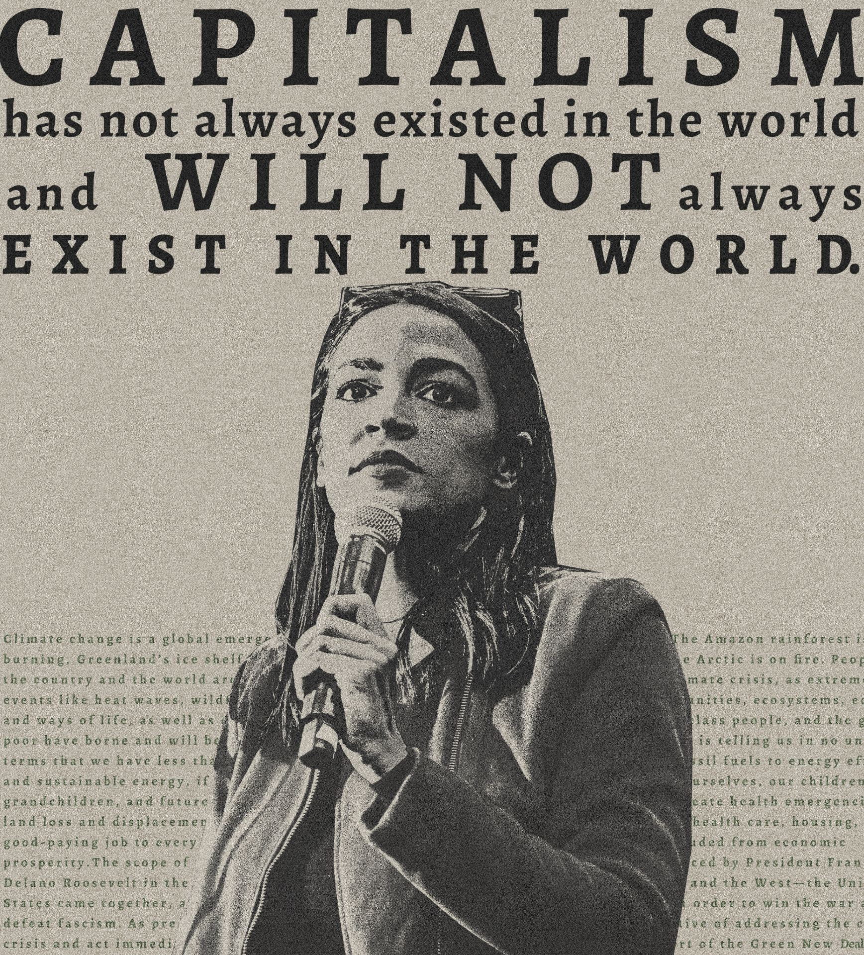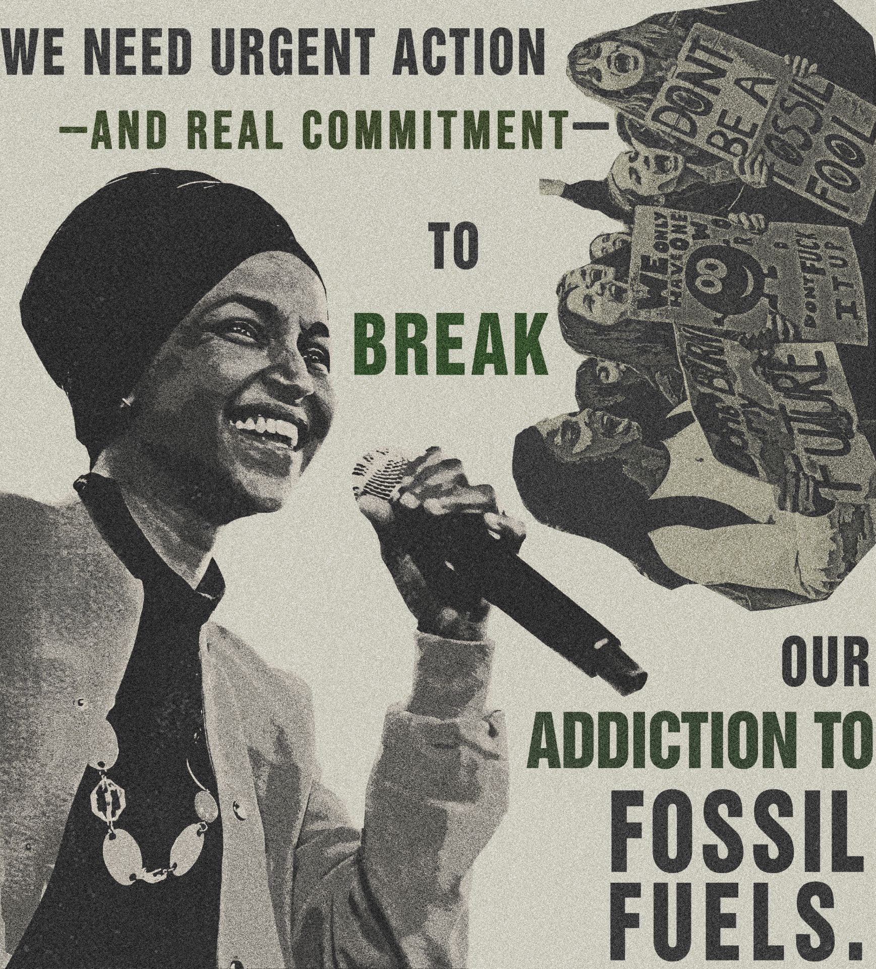 In this piece, my main intention was to celebrate, the leading women in the Democratic Socialist movement in the US. Alexandria Ocasio-Cortez, Ilhan Omar, Ayanna Pressley, and Rashida Tlaib are among those women. These women have made it their mission to bring forth the voices of people from marginalized communities. They do not only represent cultural diversity, but also different world views and the voices of the youth in the nation. Being a Bengali, Muslim, and American, the values they represent and support matter to me.Rightwing politicians, news anchors, and party supporters associate Democratic Socialism with Communism, Dictatorship, ideas like lack of free speech, censorship of media. Red is the color most strongly associated with communism because it has historically been used as a symbol of revolution and symbolizes the blood of the people who fought in the struggles against capitalism. In order to change people’s perception of Democratic Socialism being in likeness to Communism, I want the color of the DS movement to be green. For me, the DS movement is meant to bring change, hope, equality. Green being is the color that symbolizes nature, growth, renewal, I thought it was very tting for the movement. Each of the panels has a quote by the Congresswoman represented in them.