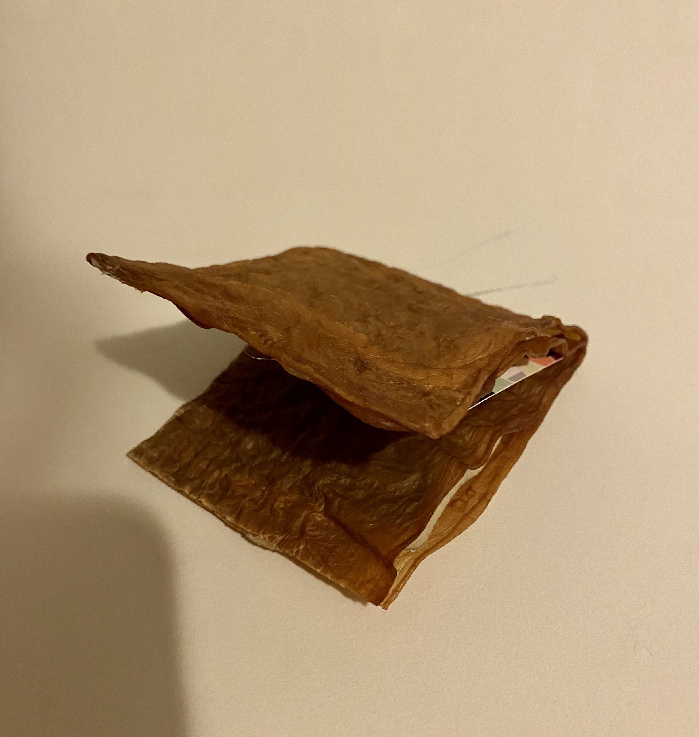 For my final project, I wanted to explore different alternative ways to fashion. By fusing plastic bags, I created a jacket out of them. This functions as a windbreaker and took plastic bags out of the landfill. As well as growing kombucha leather to create a wallet out of it in response to other leathers used by the fashion industry. Through this project, I wanted to create beautiful pieces that were repurposed “trash”. We throw away many items that we deem valueless and I want to take some of those items and integrate them into fashion which is typically a very trash-consuming field.