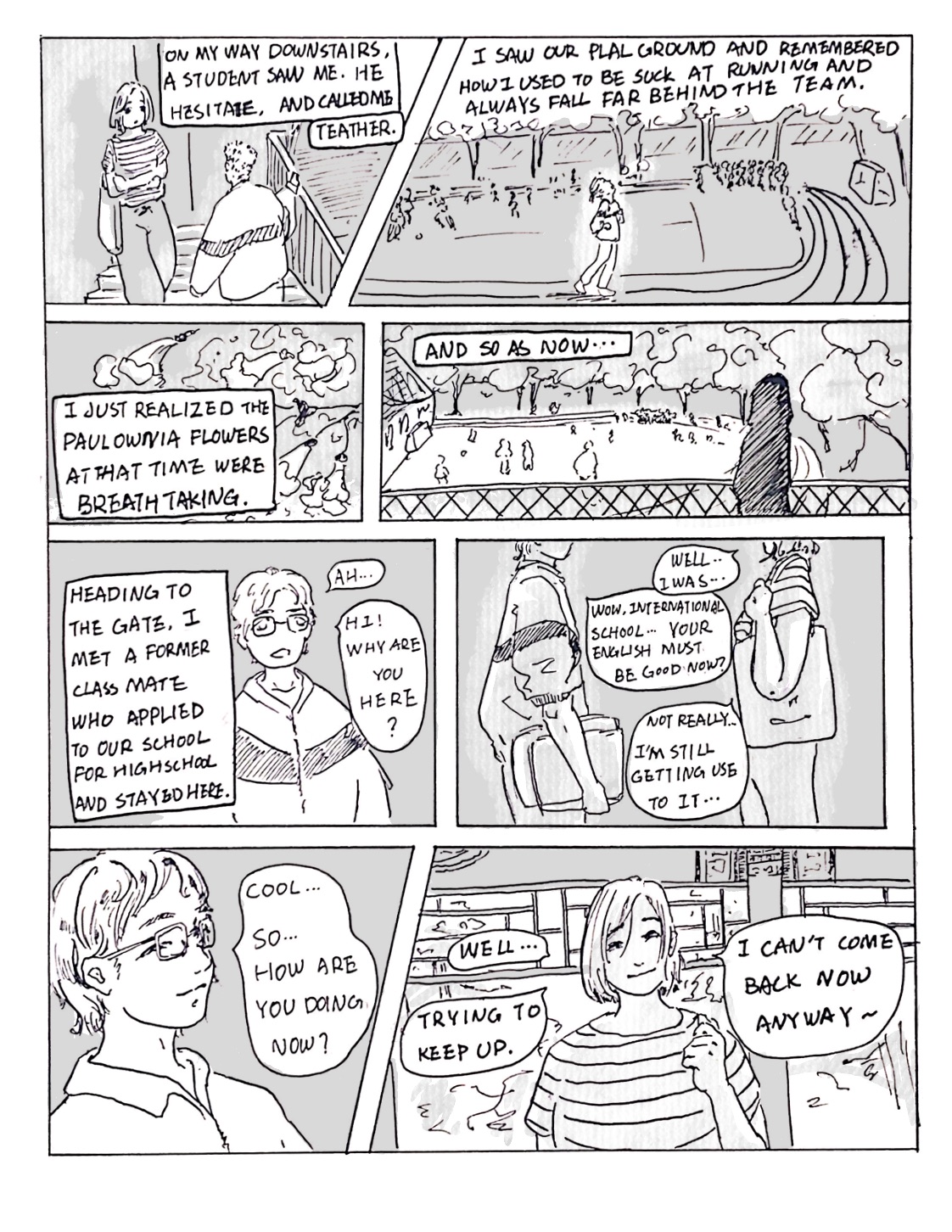 Something I experience while I went back to my middle school, and felt not belonging to anywhere. However, it’s nice to meet old stuff and people.