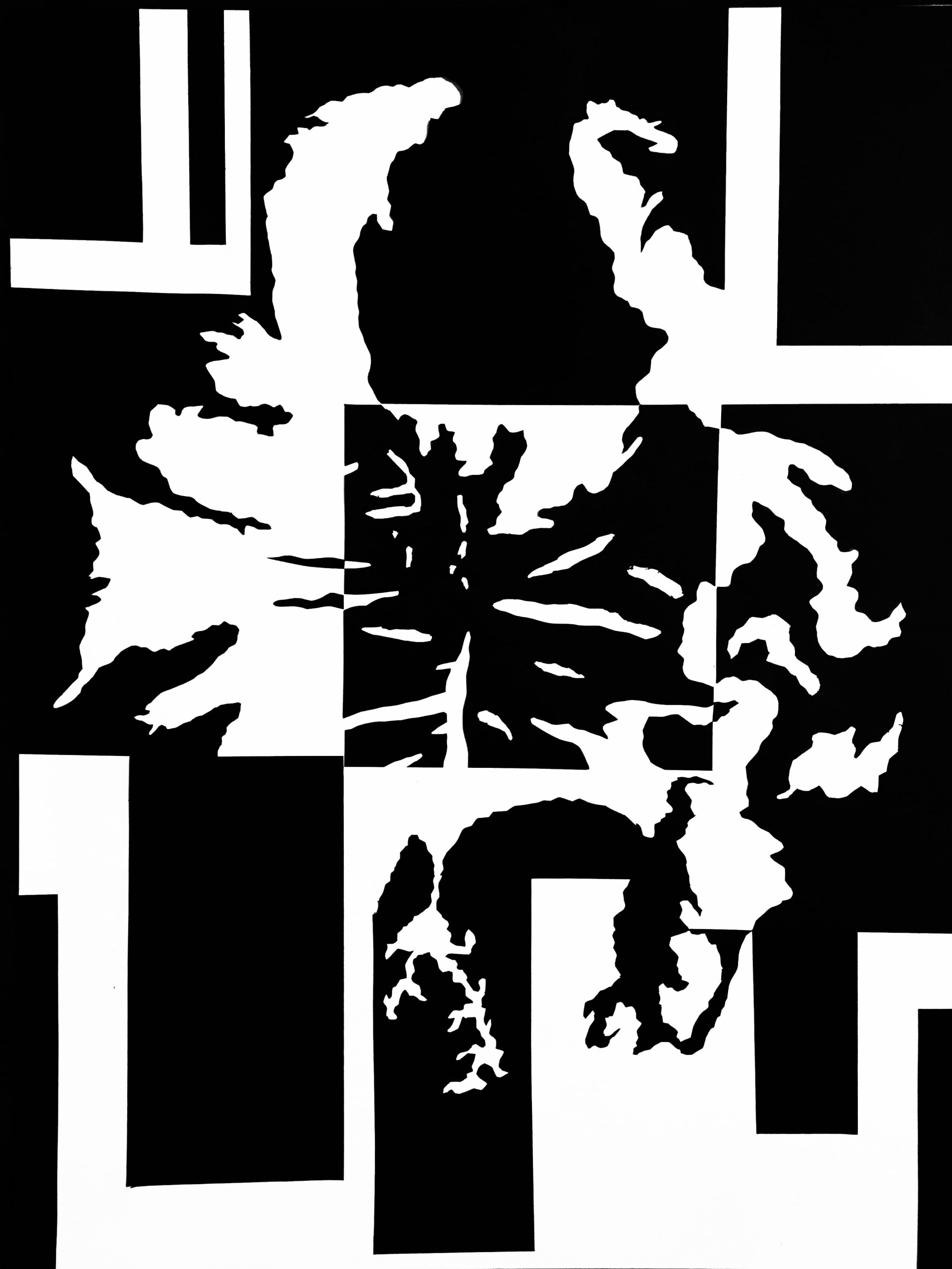 Intrusive Thoughts is an abstracted representation of the human brain. I consolidated the folds of the brain to make the object less obvious (and to make the cutting process more manageable). I also sectioned off the brain in inverted rectangles to further distort the form. The contrast between the organic lines of the brain with the abrupt straight lines formed by the inverted blocks is representative of disruptance in the human thought process. The decision to glue solid black rectangles around the corners was made to balance out my composition. While unintentional, I feel that this choice created a glitchy effect that further pushed the idea of intrusive thoughts.