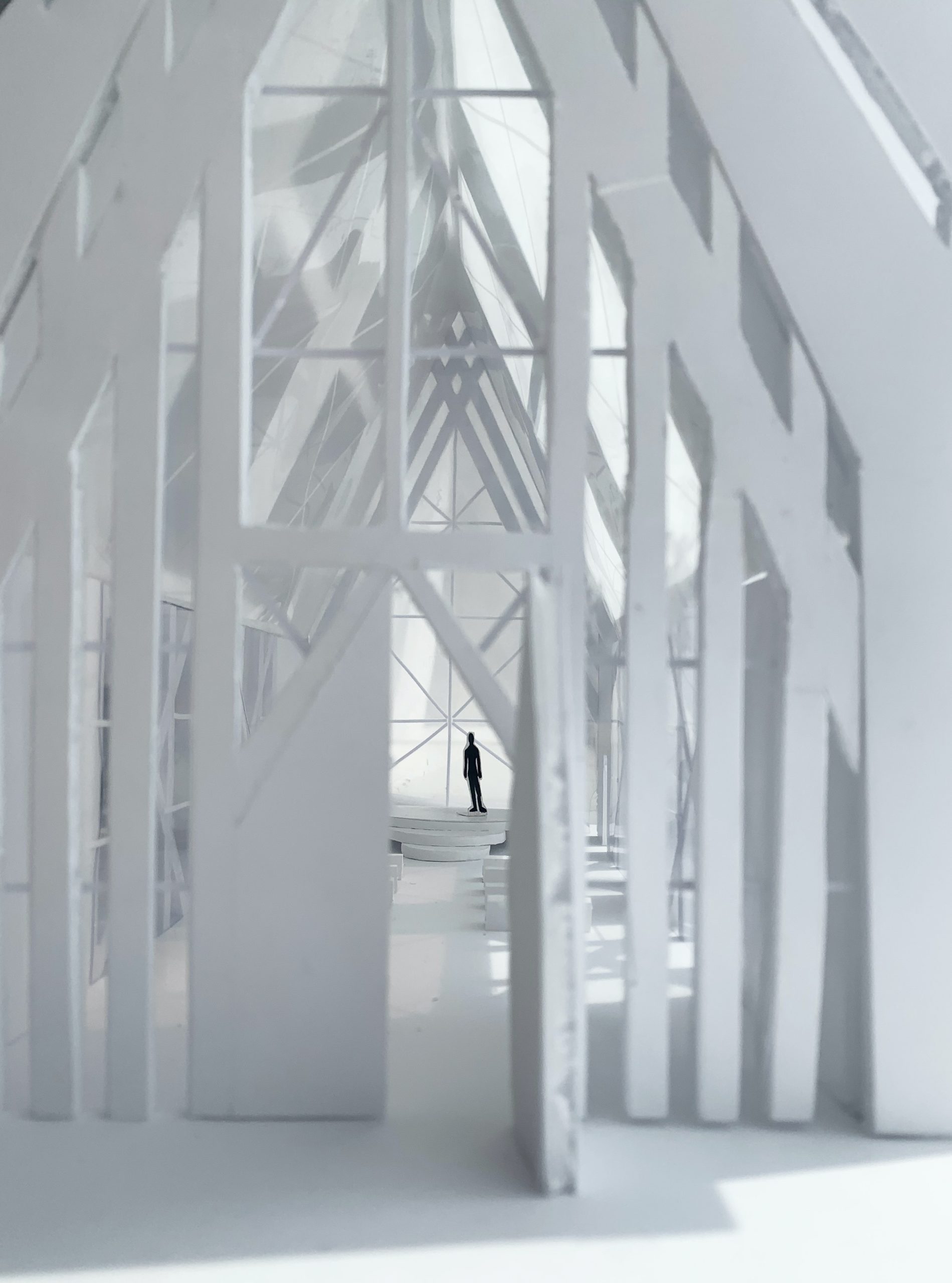 Prompt: The project aims to build a sculptural model that can be considered as a sacred space.