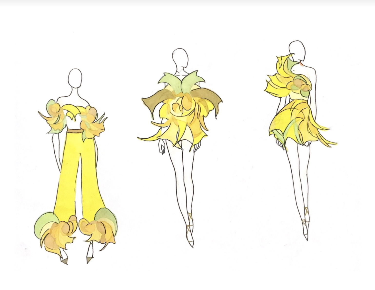 I was really obsessed and interested in the process of the nature study of color. I wanted to extend the shapes and color palette I created into a collection of fashion looks. My major is fashion design, color is so important in this field, and at the nature study project, I did really inspired me that all those fabulous shapes and colors could always be extracted from nature.