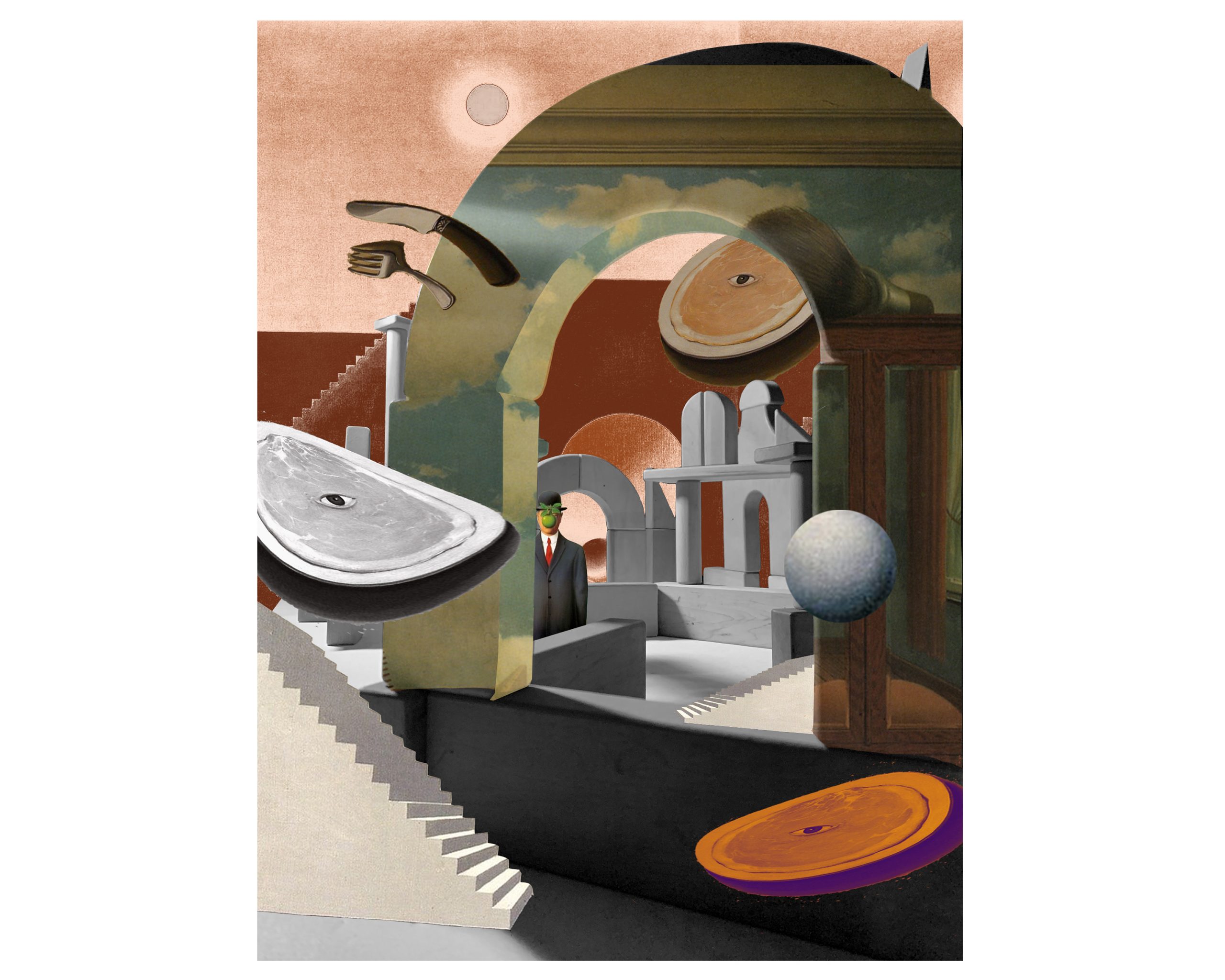 By combining and manipulating textures, objects, colors, and composition, I made two collages inspired by René Magritte and David Hockney. The audience is being introduced to the surrealistic world of the artists’.