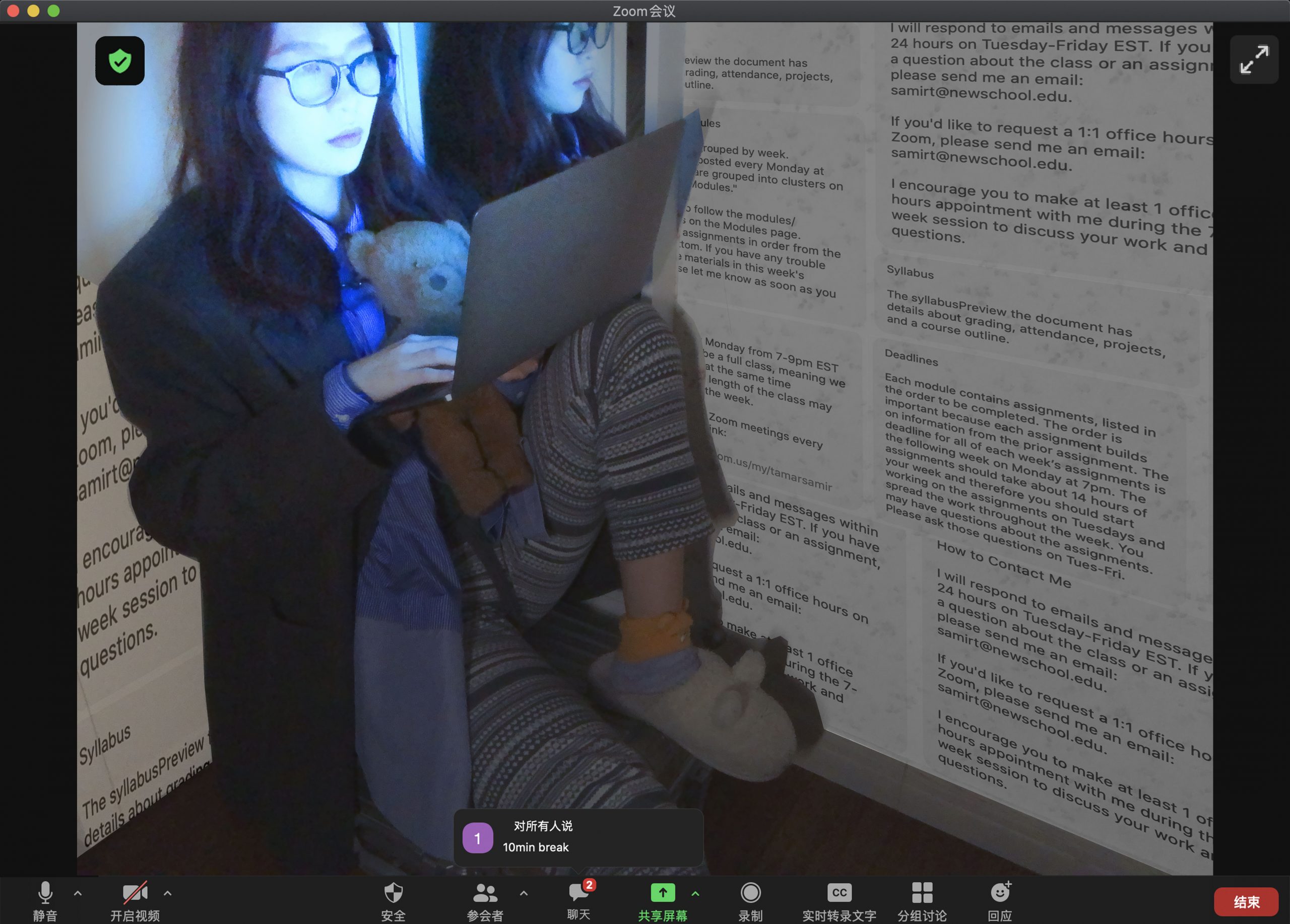 The idea of Covid-19 quarantine status jumps out immediately as I am now tired of the online learning environment and eager to return to offline study mode. The zoom learning environment is not as easy as campus life in making connections to my peer and professors but I connect more with my laptop and other digital devices than ever before. I found the Zoom meeting outfit combo interesting and iconic as it represents quarantine life in the digital era. So I want to present a photo that shows my connection to online learning and the digital world with a dull, lonely atmosphere.