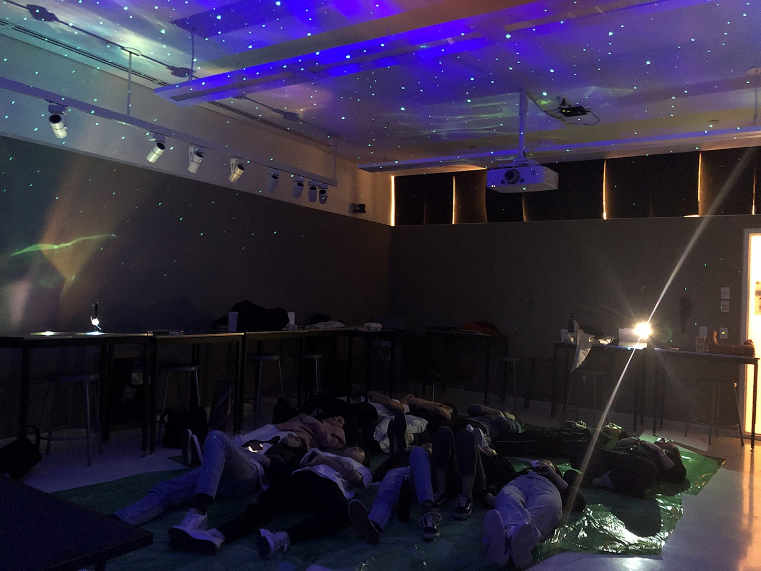 This is a sensory experience rather than an installation piece. We live in a shoebox sized place and call it our home in the city, most of us don’t have natural lightings in our dorm. Sometimes we crave a place where we can get away from our stress and work, but living on campus is inevitably linked to our academic life. We can’t really escape it, but we can do something about it. I wonder how much we can do to change our perception of our surrounding environment. I used sounds, visuals, and scents to create an immersive experience that transcends the audiences’ current space and time. By incorporating elements of meditation, this experience also provides the audience with a calming state of mind and helps them to relax in the midst of a hectic academic environment.