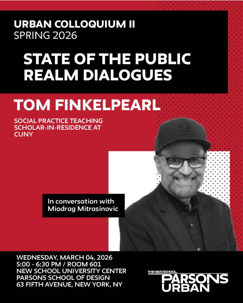 This lecture is part of the MS Design and Urban Ecologies’ Urban Collouium II Spring 2026: State of Public Realms coordinated and instructed by Prof. Miodrag Mitrasinovic, Professor of Architecture and Urbanism.