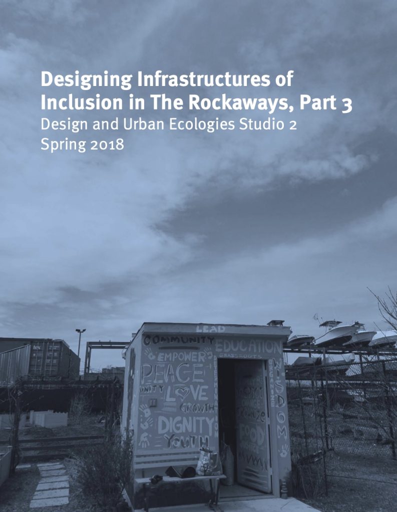 In collaboration with our main community partner and other associations and individual citizens, students develop critical design-based engagements and inclusive strategies for urban transformation. This studio book is the record of students’ attempts to propose design strategies that would transform one of the most neglected of New York City’s neighborhoods into a just, inclusive and economically prosperous urban space co-produced by its citizens, varied actors in the domains of civil society and the government, as well as with many members of the vibrant entrepreneurial and small-business communities in The Rockaways.