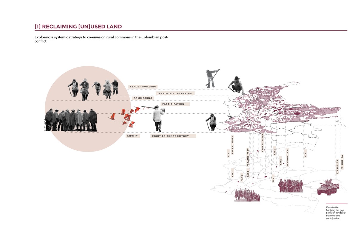 This project explores strategies of co-governance designed to strengthen collaborative peasant communities in post-conflict Colombia. The peace agreement between the Colombian government and FARC-EP (the biggest guerrilla group in the country) was signed in 2016 and was designed to address the socioeconomic disparities that caused the conflict. The agreement was intended to increase administrative power and promote the political participation of disenfranchised peasant communities. Based on the model of community land trusts (CTLs), this thesis proposed a strategy to: Identify national land that can be transferred to peasant groups; Identify peasant groups that are already working on the right to the territories and explore how governmental agencies can include them in decision making; and Develop participatory strategies to facilitate the collective design of collaborative economies. This work is the result of a collaboration with DeJusticia, a Colombia-based NGO that focuses on strengthening the rule of law and promoting human rights. After a year of work, we had developed a methodology with which to determine which plots had been irregularly given to rich landowners and which ones could potentially become CTLs. Additionally, I developed a participatory design kit to guide conversations on how peasant economies can be supported in post-conflict Colombia today.  See more on issuu.
