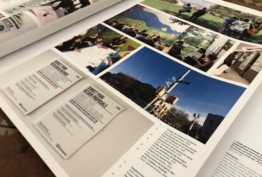 United for Housing: Reclaiming Local Cooperativism in Sunset Park was exhibited at the Museum of History of Immigration in Paris in Spring 2020. This multi-year project included the work of three student cohorts of the MS in Design and Urban Ecologies developed in collaboration with community partners in Sunset Park, Brooklyn. The exhibition was part of the international and transdisciplinary project Inscriptions in Relation led by Civic City and Dix-Milliards-Humains Research Institute. Over 20 design schools were part of the event which brought together research conducted by theoreticians, creators, artists, designers, historians, urban planners, anthropologists, and citizens. Graduate students Jason Brown, Daniel Chu, Daniela Castillo, and Ana Prada represented the over 40 students that were involved in this housing project.